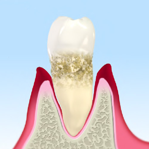 歯ぐきの炎症が慢性化し、歯を支える骨(歯槽骨)がやや溶けている状態です。